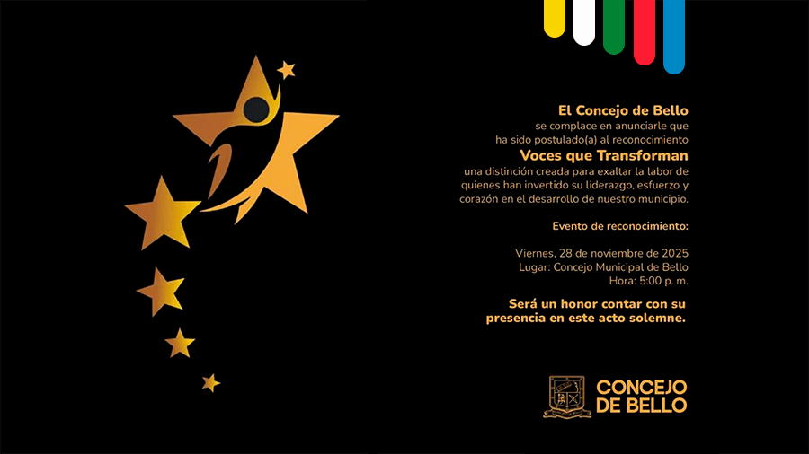 El Evento de Reconocimiento: La ceremonia se llevará a cabo el próximo viernes 28 de noviembre de 2025 a las 5:00 p. m. en el Concejo Municipal de Bello. Será un acto solemne donde la labor de «La Cole» será exaltada como una de las fuerzas que impulsan el desarrollo local.